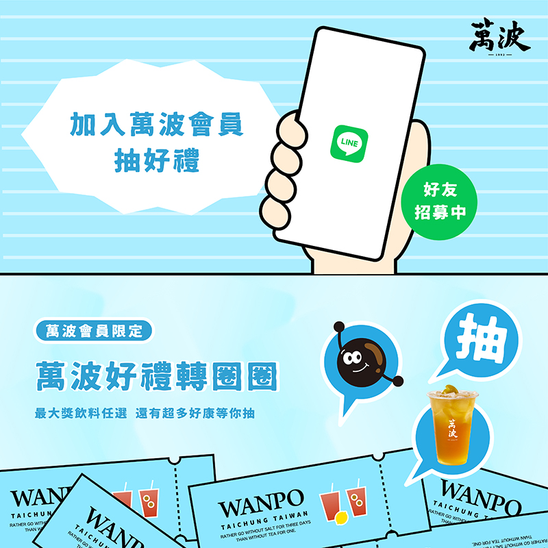 ▎8/1起加入萬波LINE 並註冊會員可參加好禮轉圈圈