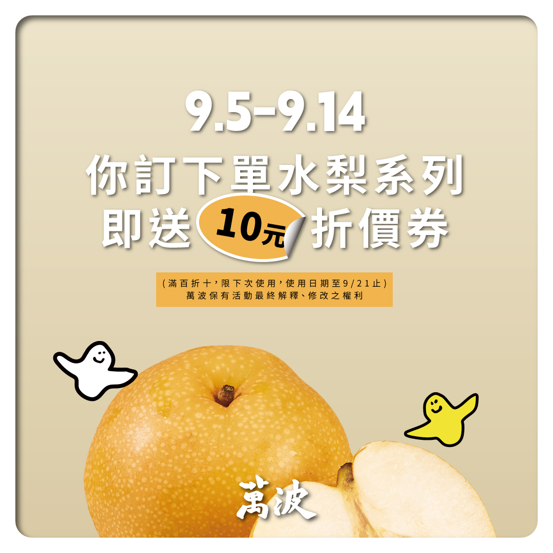 【線上活動】購買水梨系列飲品,即獲得滿百折十折價券