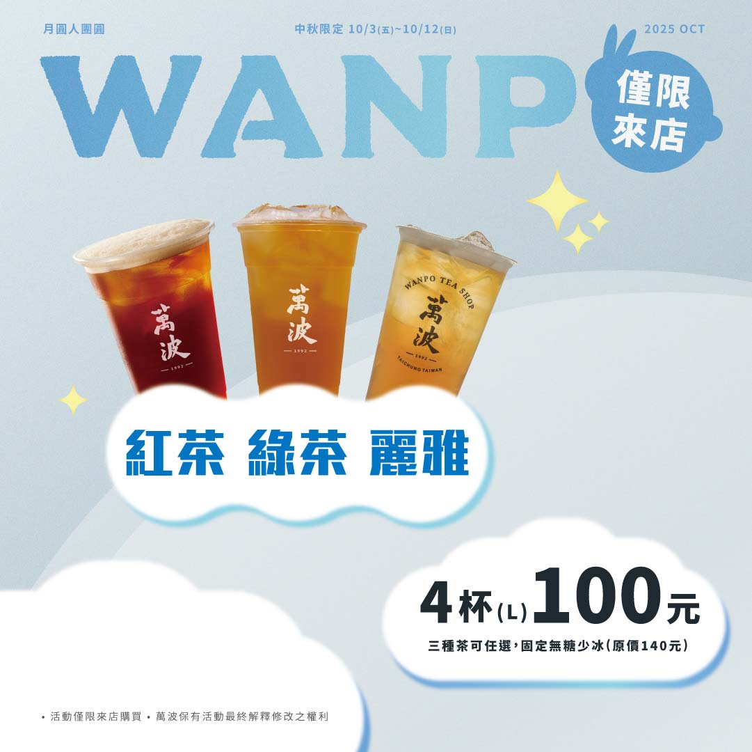 ➤此活動不可與其他優惠合併使用,萬波島嶼紅茶保有活動最終解釋、修改之權利